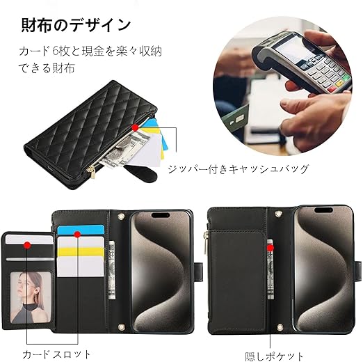 Aquos Sense9 ケース 手帳型 アクオスセンス9 ケース 手帳型 Aquosセンス9 ケース 財布型 Aquos Sense9 カバー ストラップ付き 携帯ケース Aquosセンス9 ショルダー Aquos Sense9ケース 肩掛け 斜めかけ 縄掛けケース アクオスSense9 ケース 手帳型 スタンド機能 キャッシュポケット RFID スマホケース アクオスSense9 - ブラック
