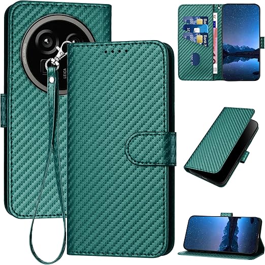 Gedurya AQUOS R9 Pro ケース 手帳型 アクオス R9プロ スマホケース 炭素繊維ブレイドスタイル 肌触り良い SH-54E ケース アクオス R9 Pro 携帯カバー マグネット開閉式 スタンド機能 軽量 薄型 AQUOS R9 Pro 手帳型 ケース 指紋防止 人気 上質 SH54E 携帯ケース 全面保護 財布型 便利 - グリーン