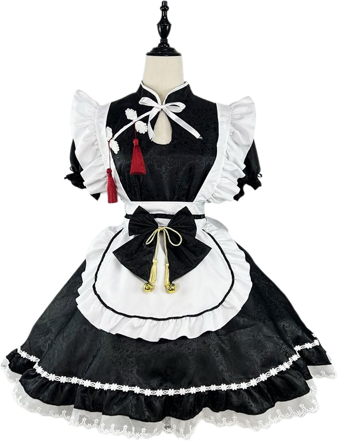 [YZZYQQ] メイド服 セット ハロウィン コスプレ衣装 セクシー 可愛い ロリータ 小悪魔 メイド服 ロリータ コスプレ 半袖 蝶結ぶ パーティー イベント 演出服