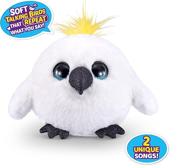 ZURU Pets Alive Chirpy Birds (ホワイトオウム) しゃべる電子ペット 巨大なサプライズエッグ ステッカー くし ふわふわ粘土 鳥 動物 ぬいぐるみ 女の子