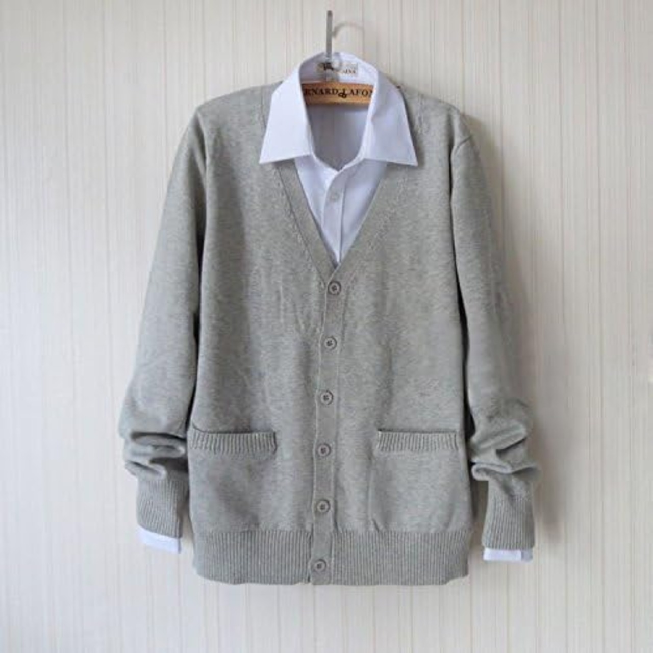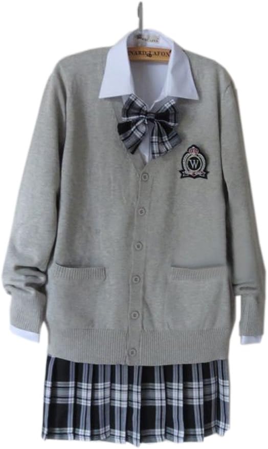 ノーブランド品 JK制服 4点セット 大きいサイズ 女子高生 学校制服 春秋冬用 スクール仮装 コスチューム JKコスプレ クラスの服 學院風 イギリス風 高校制服 (XL, 4点セット(グレー・カーディガン+綿・シャツ+チェック柄スカート+リボン))