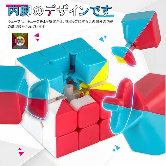 【抜群な安定感】内部構造が進化しておりPOP防止技術を採用しております。どんなに速く回しても 、キューブパーツが外れることがありません。ネジ締め具合で、センターキューブの蓋を外し、ネジを捻て、自分で回し心地が調整できます。圧倒的な安定性と耐久性がありますので、万人向けのMagic Cubeです。