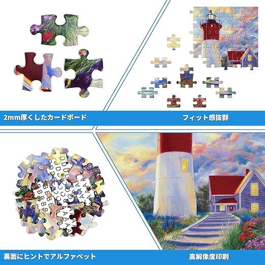 【適度な難易度】パズルと同じサイズの参考図が付いていて、裏面にヒントでアルファベットが書いてあり、見分けやすく扱いやすいピースサイズで子供&大人の初心者または高齢者もオススメ。