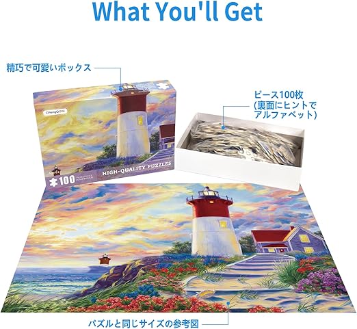 CHengQiSM 100ピース ジグソーパズル ラージピース 灯塔 100ピース パズル 絵画 子供&大人 ジグソーパズル 初心者 絵画 風景 花 空 海 おもちゃ 6歳以上 プレゼント(45x35cm)