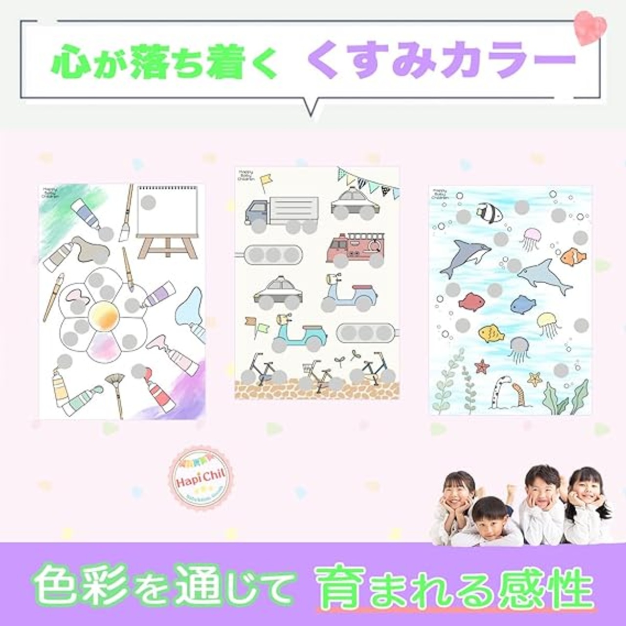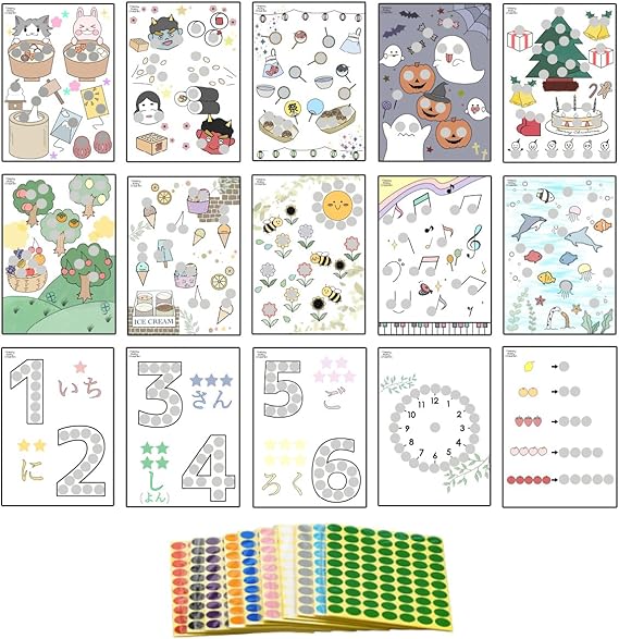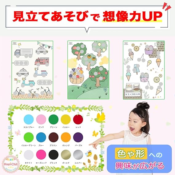 【心を育てる知育カラー】HapiChil モンテッソーリ台紙 30種類セット (保育士監修) 知育 シール貼り & ぬり絵 丸シール16mmセット (15カラー × 96個)