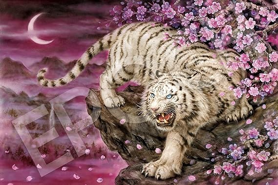 エポック社 1000ピース ジグソーパズル イラスト/アート 原井加代美 桜花白虎 (50×75cm) 11-605s のり付き ヘラ付き 点数券付き EPOCH