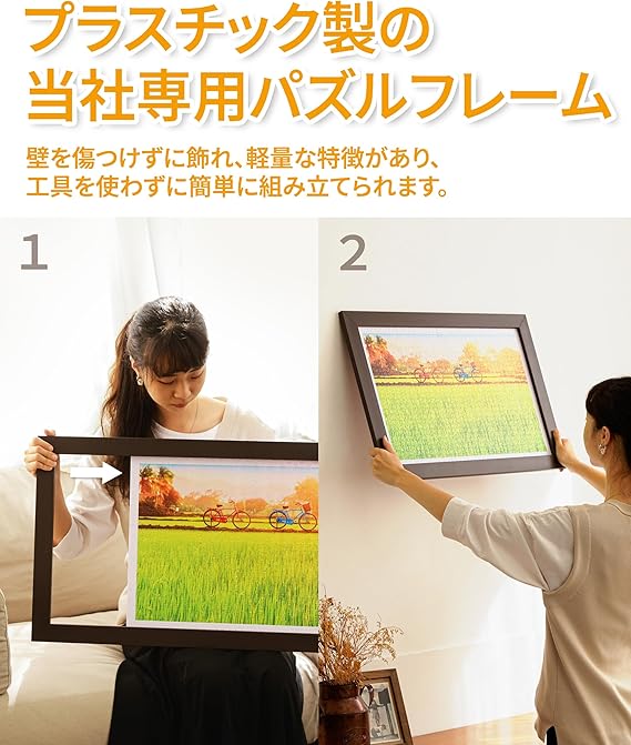 【しっかりと繋がり】「糊付け・乾燥・掃除」全て不要→従来の厚紙製のピースと異なり、ピース同士がしっかりと繋がるため、出来上がったパズルを簡単に移動させることができます。糊付けせず、