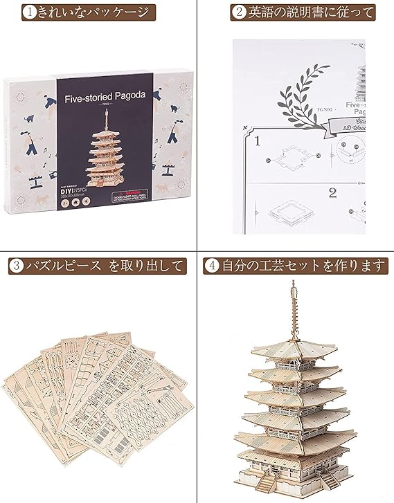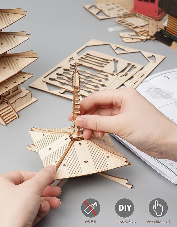 有意義なDIY体験:立体パズルは考える力を鍛える「脳トレ」としても注目されています。歴史を学びながら脳のトレーニングにもなる、3Dウッドパズルの五重塔は、お子様の知育玩具やお年寄りのレクリエーショングッズにもぴったりです。