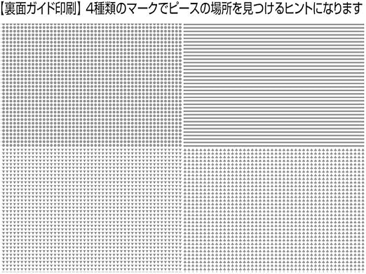 裏面には4種のマークが印刷されており、ピースを分けたりピースの場所を見つけるヒントになります。