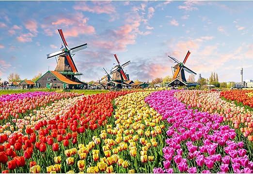 MISITU ジグソーパズル マイクロピース 1000ピース パズル 風景 自然 花 花畑 花園 風車 プレゼント 誕生日 クリスマス おしゃれ インテリア チューリップ (26 x 38 cm)