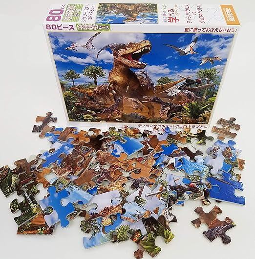 【日本製】 ビバリー80ピース ジグソーパズル 学べるジグソーパズル ティラノサウルスVSヴェロキラプトル(26×38cm)80-002