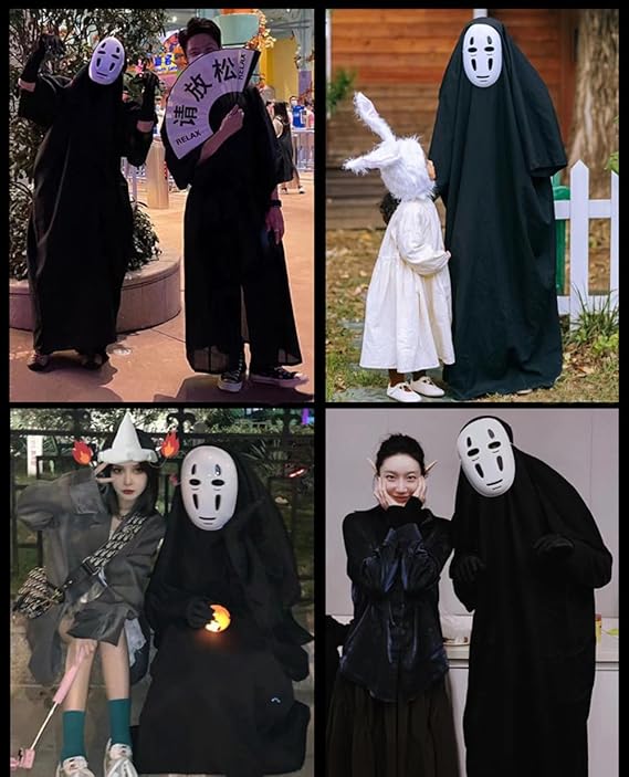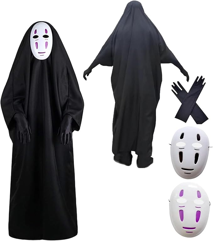 カオナシ風 衣装 (ローブ+マスク+手袋 ハロウィン カオナシ コスプレ衣装 変装 男女共用 ハロウィン コスチューム 仮装 変装 学園祭 お祭り 撮影 クリスマス マント式 Cosplay プレゼント お化け屋敷 黒