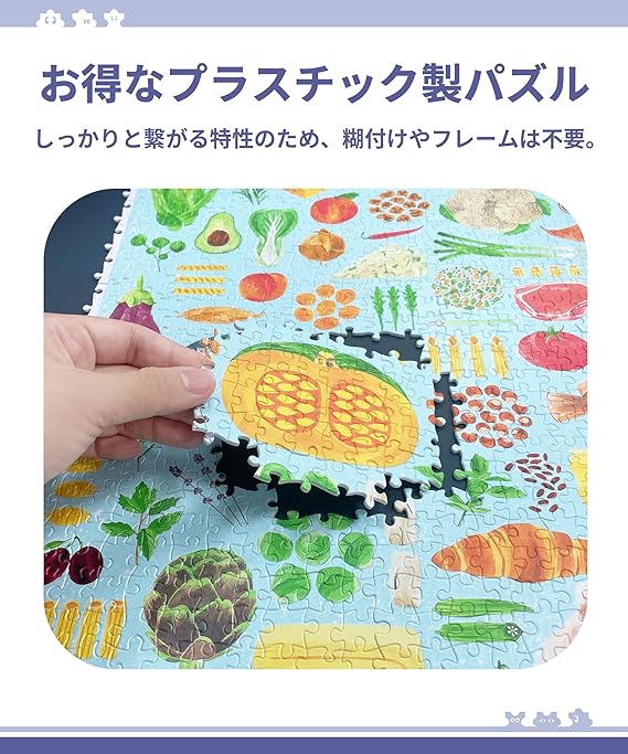 【お得なプラスチック製パズル】ピース同士がしっかりと繋がるため、マットなしで、出来上がったパズルを簡単に移動させることができます。また、糊付けせず、簡単に額装が可能であることはピ