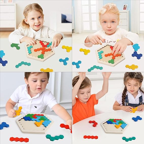 SANJAOYEE 木製テトリスパズル 木製パズル 6歳 7歳 色と形で図形感覚を育てる 小学生 女の子 男の子 子供 パズル 誕生日 プレゼント 積み木 集中力ゲーム トライアングル・パズル(パイン) 16PCS 知育道具