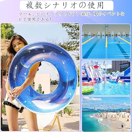 【簡単収納:】スイムリングに90%のガスを注入して膨らませるだけ,あとは水中で楽しく使えます。夏が