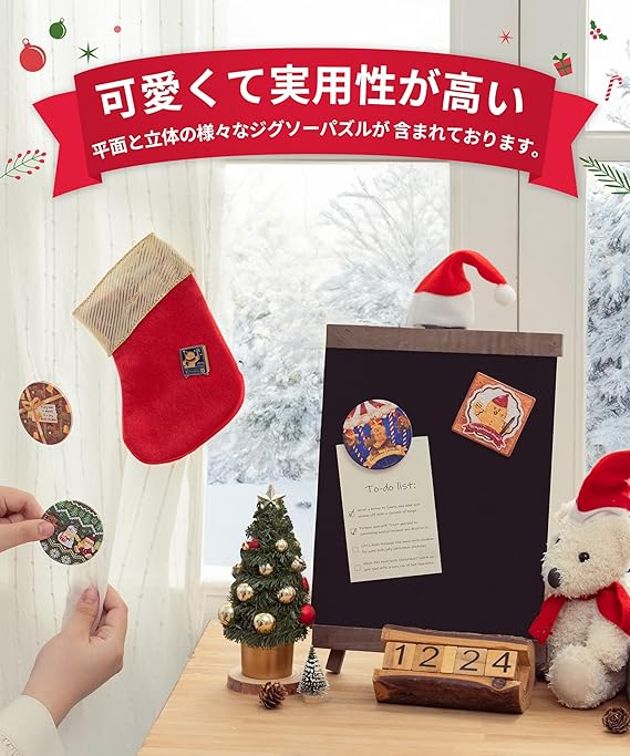 【多彩なクリスマスの楽しみ】ジンジャーブレッド・マンと一緒に24日の不思議なクリスマス探検をしてみましょう!平面と立体の様々なジグソーパズルが含まれたユニークなカウントダウンカレンダーです。クリスマスの楽しい遊園地の要素が詰まっており、家族や友達と一緒に楽しむのも、ひとりで心静かに探検するのも最適です。