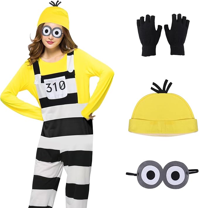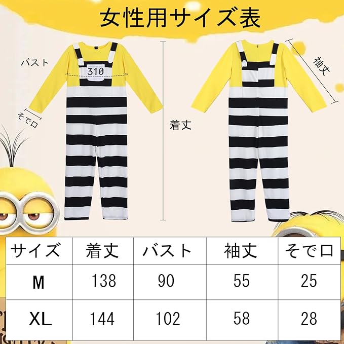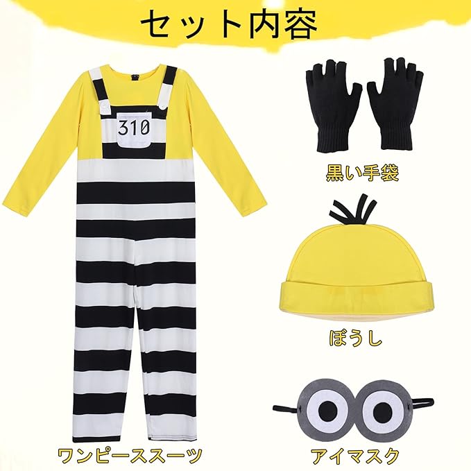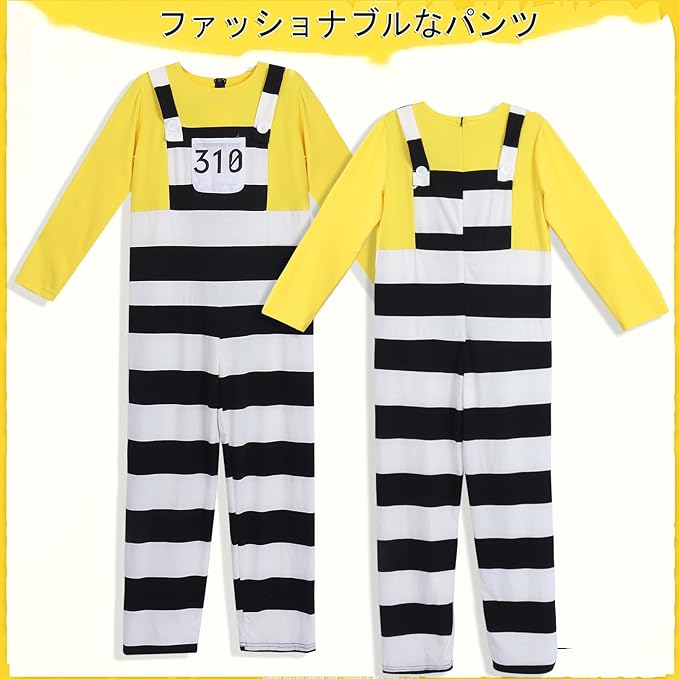 [Mprocen] ハロウィン コスプレ 囚人 大人コスチューム レディース 囚人服 イエロー 黄色 囚人コスプレ 黒白ストライプ 帽子付 男女兼用 仮装 キャラクター 囚人服 クリスマス ハロウィン仮装