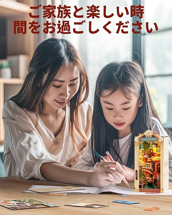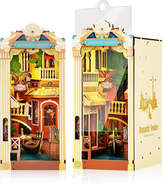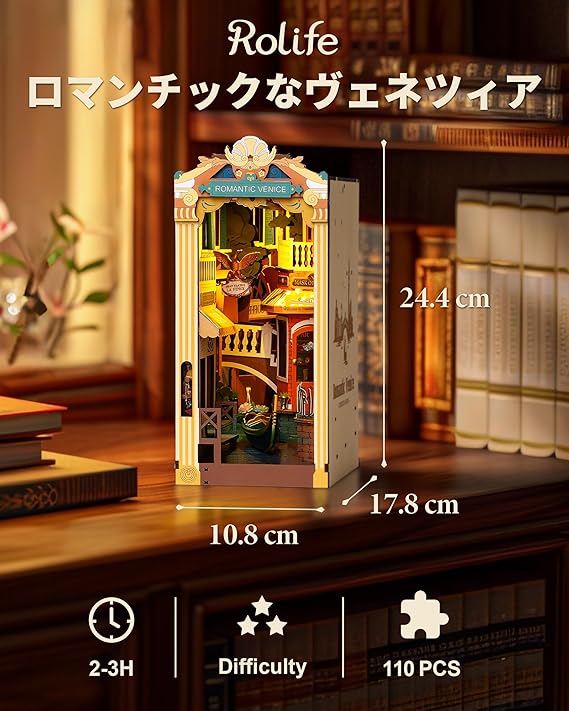 Rolife DIY ブックヌック ロマンティック ヴェニス 立体パズル ミニチュアハウスキット ブックエンド 本立て LED 本棚装飾 ダストプレート付き 手作りキット 組み立て 木製パズル ウッドクラフト イラスト説明書付き 大人向け 高学年向け プレゼントに最適 ヨーロピアンスタイル TGB08 公式販売