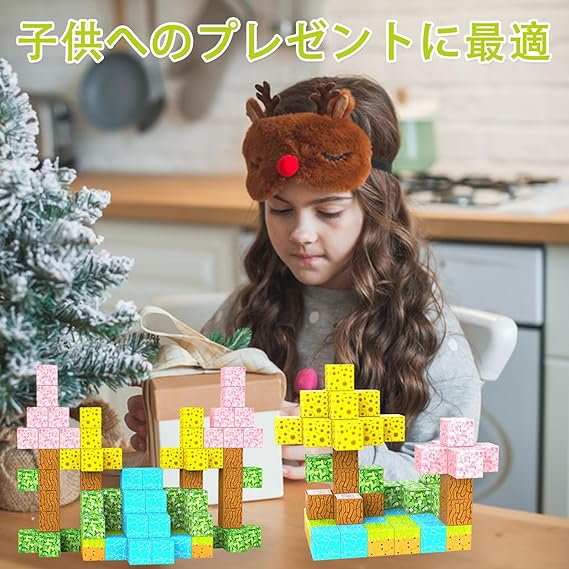VIXA マグネット ブロック マグネットキューブ 春の世界モチーフ くさち 桜 ひまわり 大きいサイズ 48個 33mm 立体パズル 建設ビルディングブロック 子供 男の子 女の子 3D おもちゃ マグネット 頭脳パズル 脳トレ 初期教育 STEM教育キット 祝い 小学生 おもちゃ 誕生日 入園 卒園 ギフト クリスマスプレゼント
