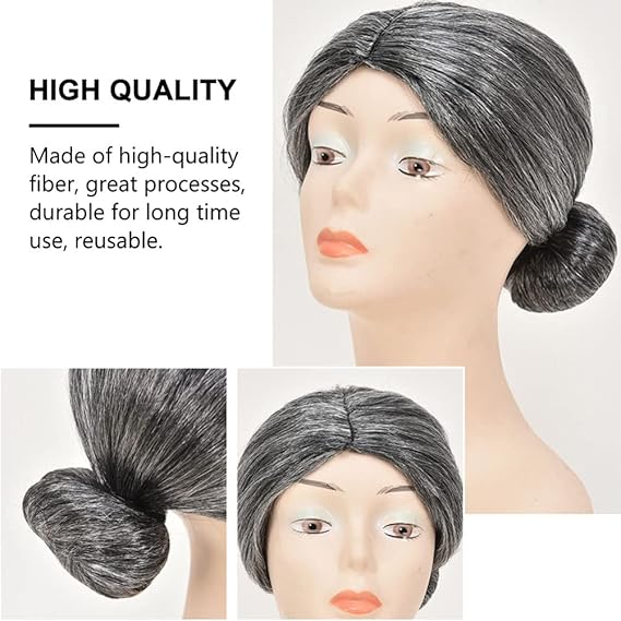 LIOOBO おばあさん かつら 白髪 コスプレ 変装グッズ 小道具 ハロウィン ウィッグ 高齢女性