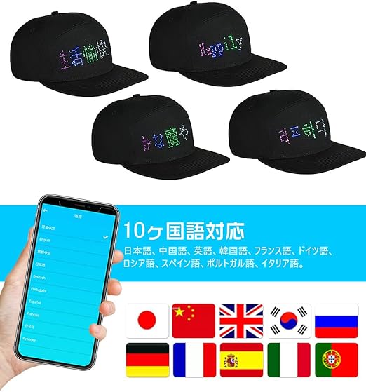 LED 光る帽子 led キャップ ディスプレイ キャップ おもしろグッズ 面白い帽子 10ヶ言語対応 4色ディスプレ USB充電式 スマホAPP簡単操作 文字 DIY 誕生日 応援 パーティー クリスマス ハロウィングッズ スポーツ観戦 宣伝 グッズ 人気 男女兼用 フリーサイズ 日本語説明書