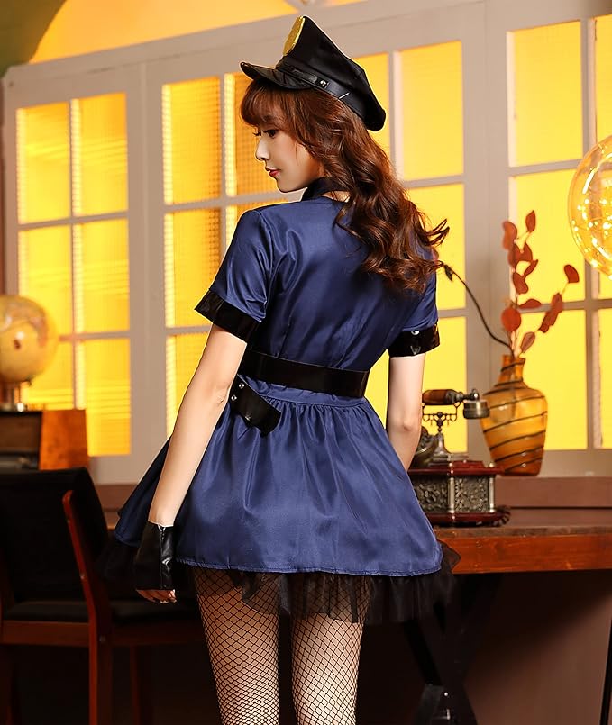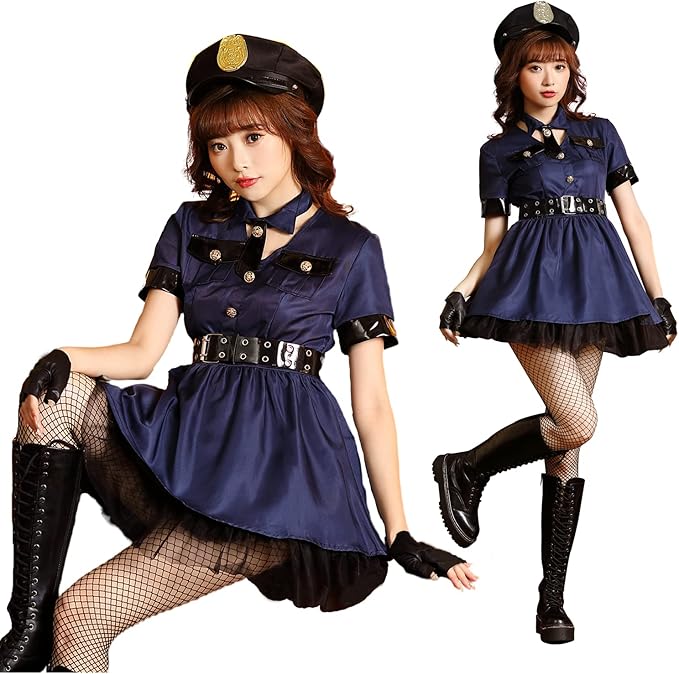 [JUNDOMECY] ハロウィン 仮装 ポリス コスプレ レディース 紺 帽子 可愛い セクシー ミニスカポリス 大きいサイズ 警察 衣装 婦警 コスチューム 5点 セット イベント パーティー 文化祭