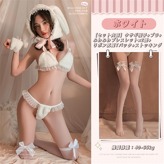 [ssetoy] コスプレ バニーガール ウサギ かわいい セクシー モフモフ うさぎ 逆バニー コスプレ 三点式 ウサギ ビキニ風 ふわふわ ウサギ帽子 萌え萌え メイド コスチューム 制服 誘惑 女性 仮装 衣装 セット 公演 演劇 撮影 記念日 ハロウィン クリスマス パーティー うさ耳 被り物 ブラ ブレスレット Tバック ストッキング付き 5点セット