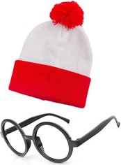 [Limspace] ウォーリー コスプレ ハロウィン コスプレ ウォーリー コスチューム ウォーリーを探せ ハロウィン 衣装 ハロウィン サンタ クリスマス 帽子 ニット キャップ コスチューム パーティー 衣装 赤白 紅白 (ニット帽+メガネ)