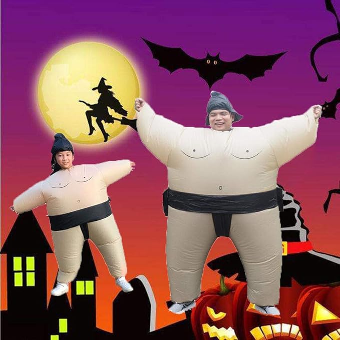 [easylivegogo] ハロウィン インフレータブル服 面白い 相撲服 目立つ コスプレ 膨らむコスチューム ハロウィン衣装 親子 文化祭 演劇 パーティー つなぎ筋肉相撲服 相撲 帽子 送風機付き 3点セット ユニセックス