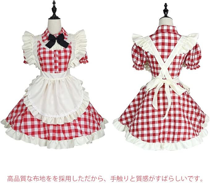 [RPFLQ] メイド服 チェック柄 喫茶店 レッド ブラック コスプレ ワンピース ロリータ 半袖 日常 萌え ハロウィン 仮装 レディース セクシー 蝶結ぶ 衣装 可愛い 大人用 ニーハイソックス