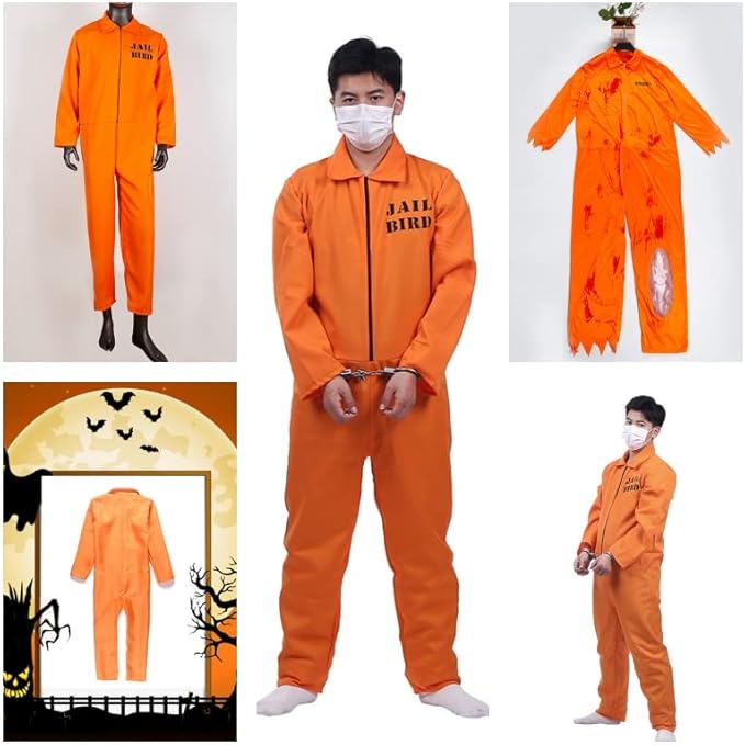 [Electric Circus] 囚人服 長袖 囚人 コスプレ ハロウィン 衣装 仮装 コスチューム 大人用 学園祭 文化祭 つなぎ 作業着