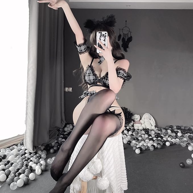 [SENMHS] メイド セクシー コスプレ エロ エッチ な 過激 下着 コスチューム ランジェリー ベビードール ビキニ 可愛い 萌え 小悪魔 誘惑 過激 仮装 ハロウィン レディースカチューシャ ストッキング付き