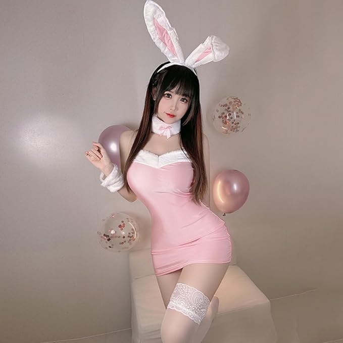 セット:ウサ耳カチューシャ+首飾り+ワンピース+Tバック+腕輪二つ(ストキング含まない)