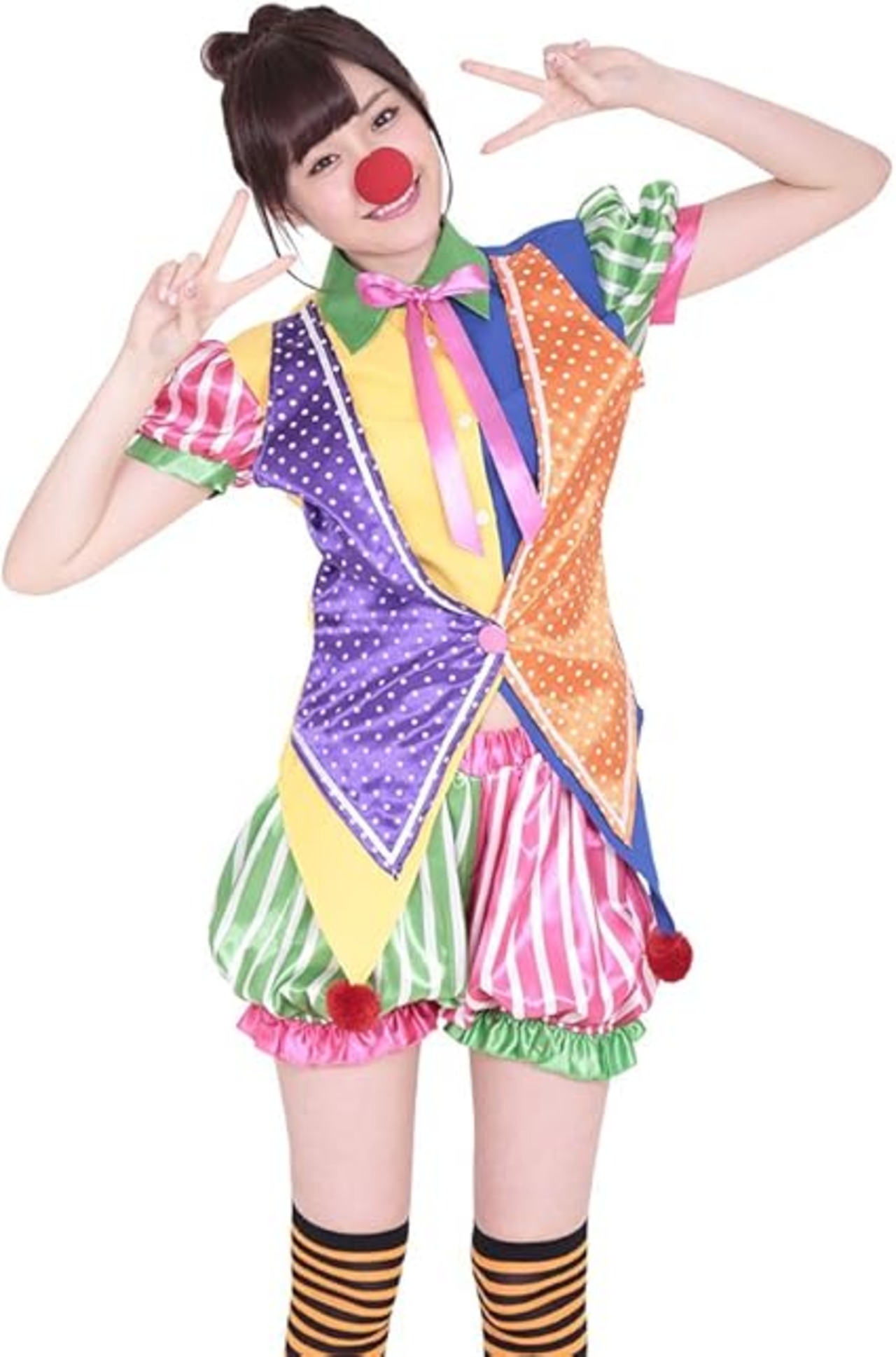 A&TCollection キングダムピエロ 赤鼻付き3点セット Mサイズ コスプレ コスチューム レディース ピエロ ジャグリング サーカス コスプレ衣装 仮装 ハロウィン