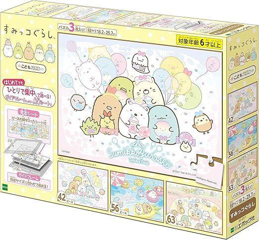 エポック社 42/56/63ピース こどもパズル すみっコぐらし (18.2×25.7cm) 62-011 3種のパズル 見本シート付 ガイドフレーム付き 3歳以上 おもちゃ EPOCH