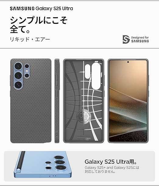 Spigen Galaxy S25 Ultra ケース 耐衝撃 薄型 重さ35g ストラップホール付き 米軍MIL規格取得 カメラ保護 傷防止衝撃吸収 リキッド・エアー ACS08954 (マーブル・グレー) a