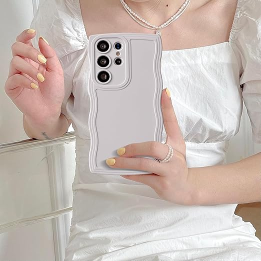 UEEBAI ケース 対応 Samsung Galaxy S25 Ultra 5G 用の ケース ソフト シリコンケース 可愛い おしゃれケース ウェーブ デザイン ケース カラフルケース ワイヤレス充電対応 軽量 薄型 耐衝撃ケース 波状エッジケース 女性 人気 バンパー スマホケース ? ホワイト a