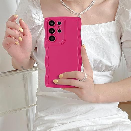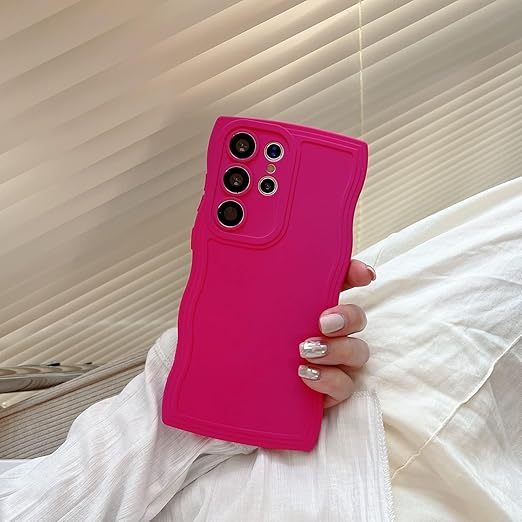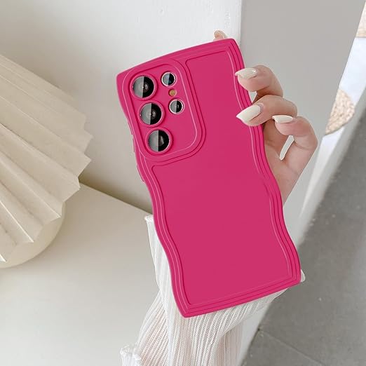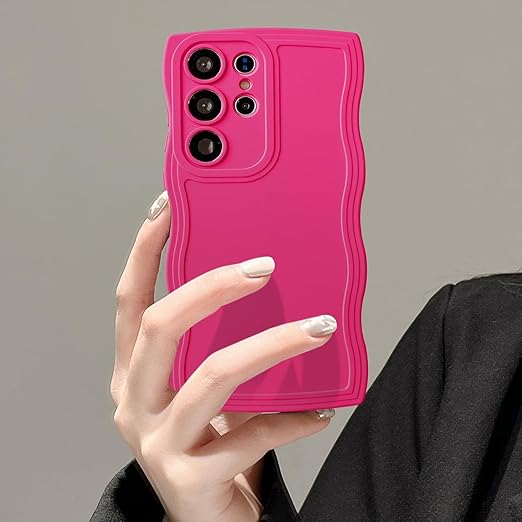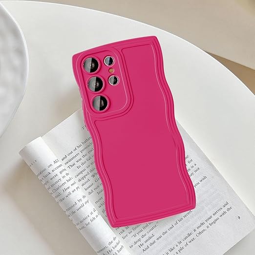UEEBAI ケース 対応 Samsung Galaxy S25 Ultra 5G 用の ケース ソフト シリコンケース 可愛い おしゃれケース ウェーブ デザイン ケース カラフルケース ワイヤレス充電対応 軽量 薄型 耐衝撃ケース 波状エッジケース 女性 人気 バンパー スマホケース ? ローズレッド a