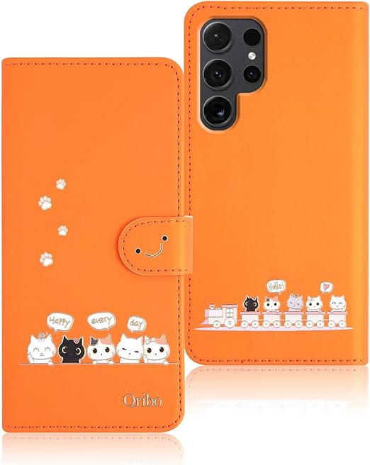 Qribo Galaxy S25 Ultra ケース 手帳型 シンプルなのに可愛いデザイン エンボス加工猫柄 うれしい気持ち 6.8インチ対応 ギャラクシーs25 ultra ケース Samsung Galaxy S25 Ultra スマホケース Galaxy S25 Ultra 手帳型 ケース ギャラクシーs25ウルトラ ケース 薄型 防水 の耐久性 滑り防止 美しい 贈り物 友達 - オレンジ a