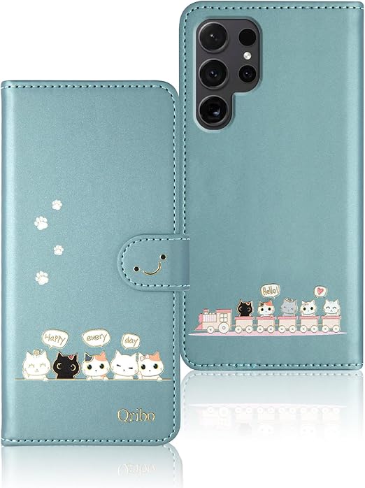 Qribo Galaxy S25 Ultra ケース 手帳型 シンプルなのに可愛いデザイン エンボス加工猫柄 うれしい気持ち 6.8インチ対応 ギャラクシーs25 ultra ケース Samsung Galaxy S25 Ultra スマホケース Galaxy S25 Ultra 手帳型 ケース ギャラクシーs25ウルトラ ケース 薄型 防水 の耐久性 滑り防止 美しい 贈り物 友達 - ブルー a