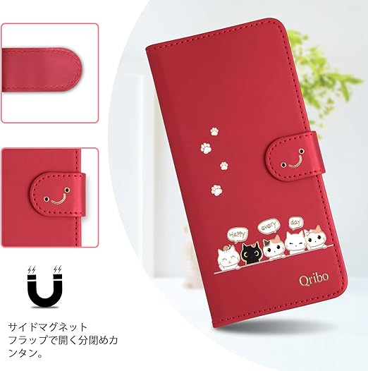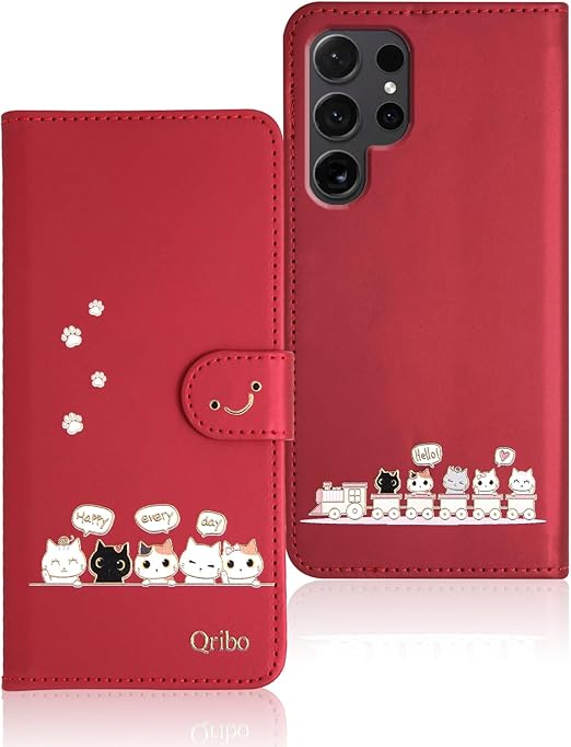 Qribo Galaxy S25 Ultra ケース 手帳型 シンプルなのに可愛いデザイン エンボス加工猫柄 うれしい気持ち 6.8インチ対応 ギャラクシーs25 ultra ケース Samsung Galaxy S25 Ultra スマホケース Galaxy S25 Ultra 手帳型 ケース ギャラクシーs25ウルトラ ケース 薄型 防水 の耐久性 滑り防止 美しい 贈り物 友達 - レッド a