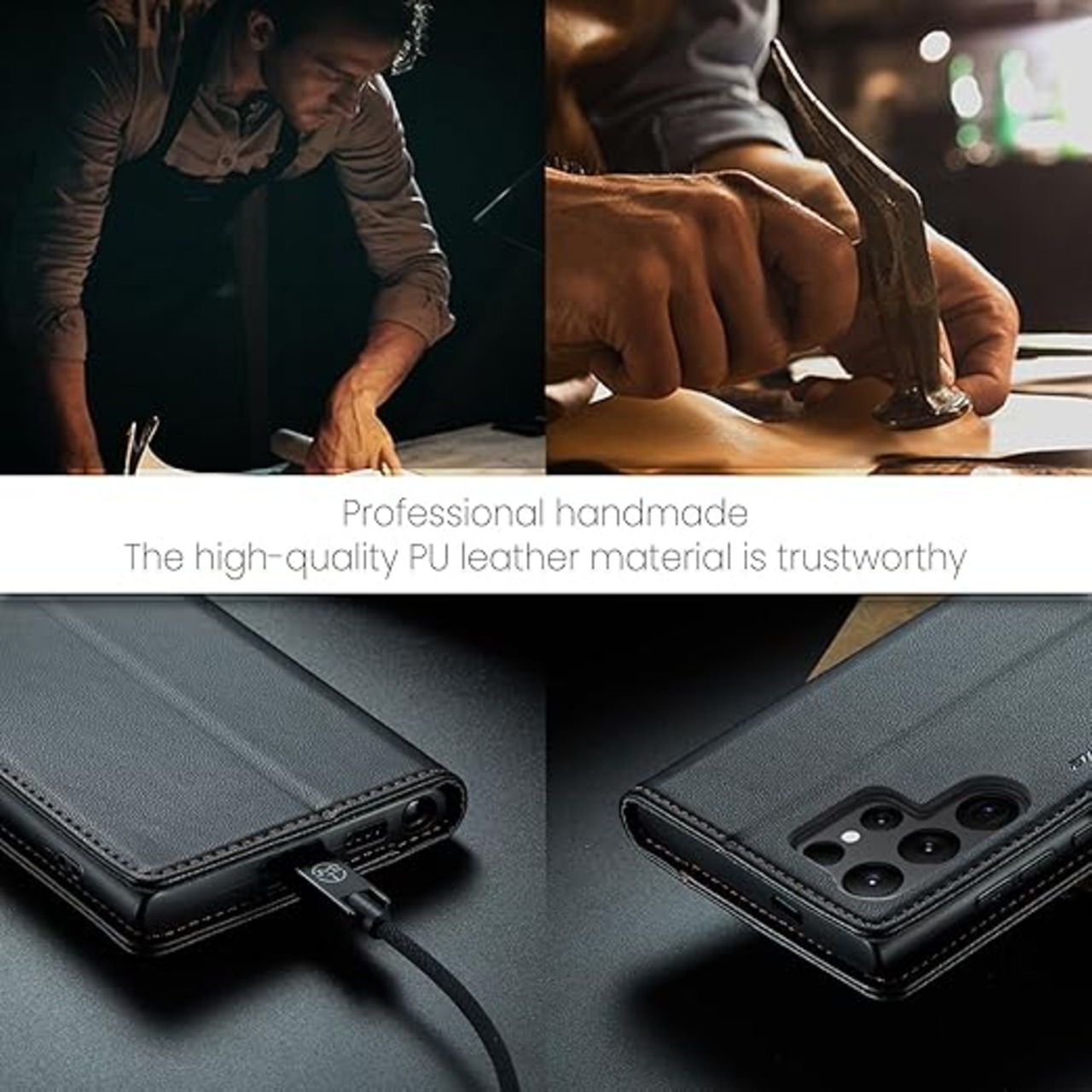 RicYeel Samsung Galaxy S25 Ultra 5G 対応 ケース 手帳型 レザー 衝撃吸収 TPU素材 スマホケース [4色選択] 耐衝撃 全面保護 カード収納 スタンド機能 磁気バックル付き 財布型カバー Samsung Galaxy S25 Ultra 5G ケース (ブラック) a