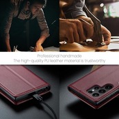 RicYeel Samsung Galaxy S25 Ultra 5G 対応 ケース 手帳型 レザー 衝撃吸収 TPU素材 スマホケース [4色選択] 耐衝撃 全面保護 カード収納 スタンド機能 磁気バックル付き 財布型カバー Samsung Galaxy S25 Ultra 5G ケース (レッド) a