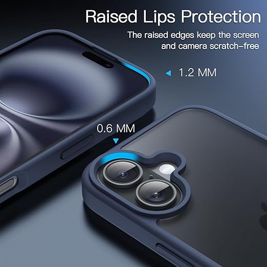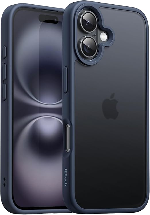 JETech iPhone 16 6.1インチ用 マットケース 耐衝撃性ミリタリーグレードの落下保護 つや消しの半透明背面 スマホカバー 指紋防止 (ストームブルー) a