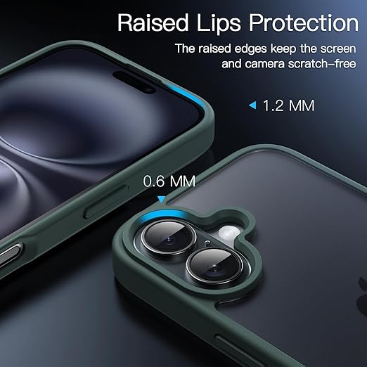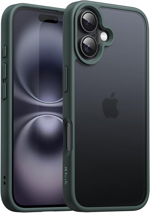 JETech iPhone 16 6.1インチ用 マットケース 耐衝撃性ミリタリーグレードの落下保護 つや消しの半透明背面 スマホカバー 指紋防止 (ダークグリーン) a