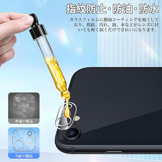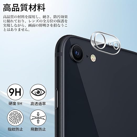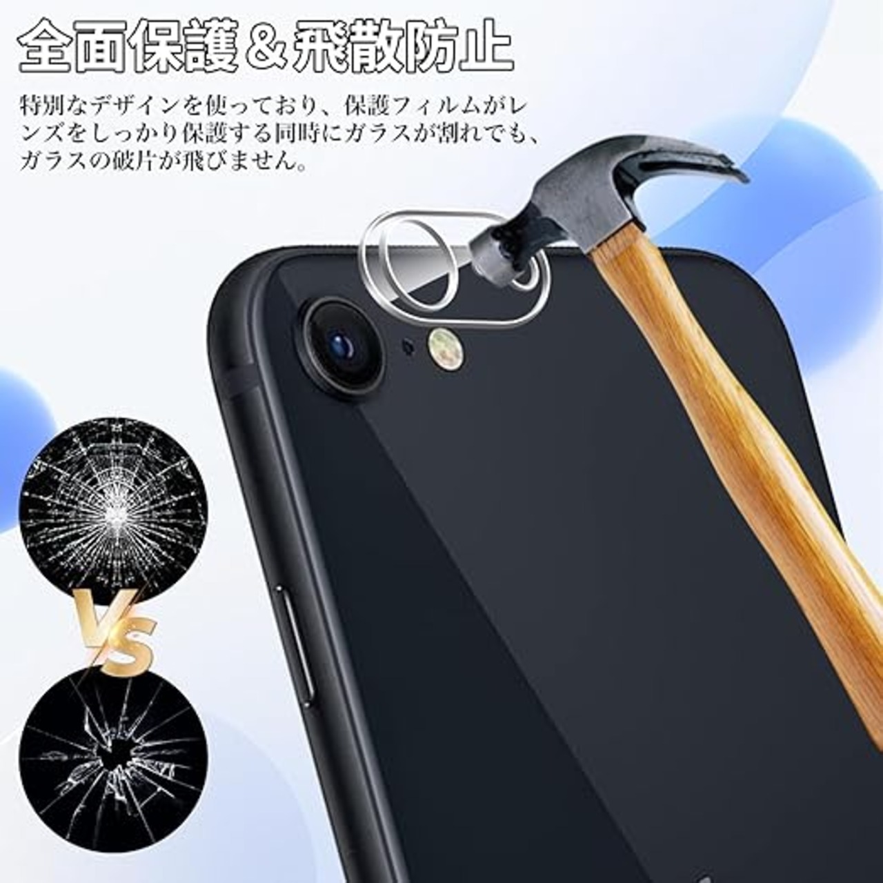 【9H硬度&飛散防止】このカメラフィルムは全面ガラスの防爆保護フィルムです。二次強化により、9Hレベルの硬度を達成し、沖撃、傷に強いです。またiPhone 16eの強化ガラスフィルムには飛散防止処理が施されており、割れたりぶつかったりしても破片が飛び散る危険がないので安心です。