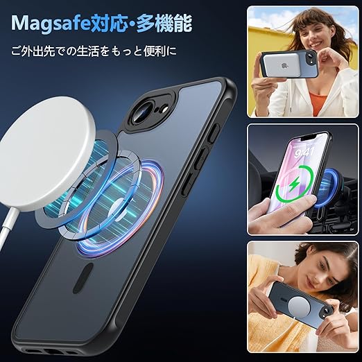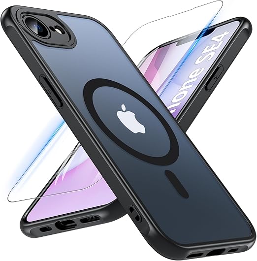 iPhone 16e ケース iPhone SE4 ケース 2025【MagSafe対応・ガラスフィルム付き】Hensinple アイフォン16e ケース 半透明 耐衝撃 黄ばみなし iPhone 16e カバー 滑り止め ストラップホール iPhone16eケース 指紋防止 マグネット搭載 マグセーフ対応 iPhoneSE4/iPhone16E スマホケース 6.1インチ用 ブラック a