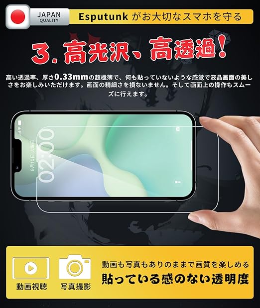 【必ずお読みください】:iPhone 16e 対応ガラスフィルム(6.1インチ)です。新品iPhoneに保護を提供いただき、安心的にご使用ください。ご希望の数は在庫数上の場合はどうぞ弊店にてお問い合わせください。【Esputunk製品保証の概要】:永久保証について、製品に不具合が生じた場合は、お客様からのお問い合わせ内容に応じて代替品交換・返金対応を提供致します。(お一人様につき1回限り)